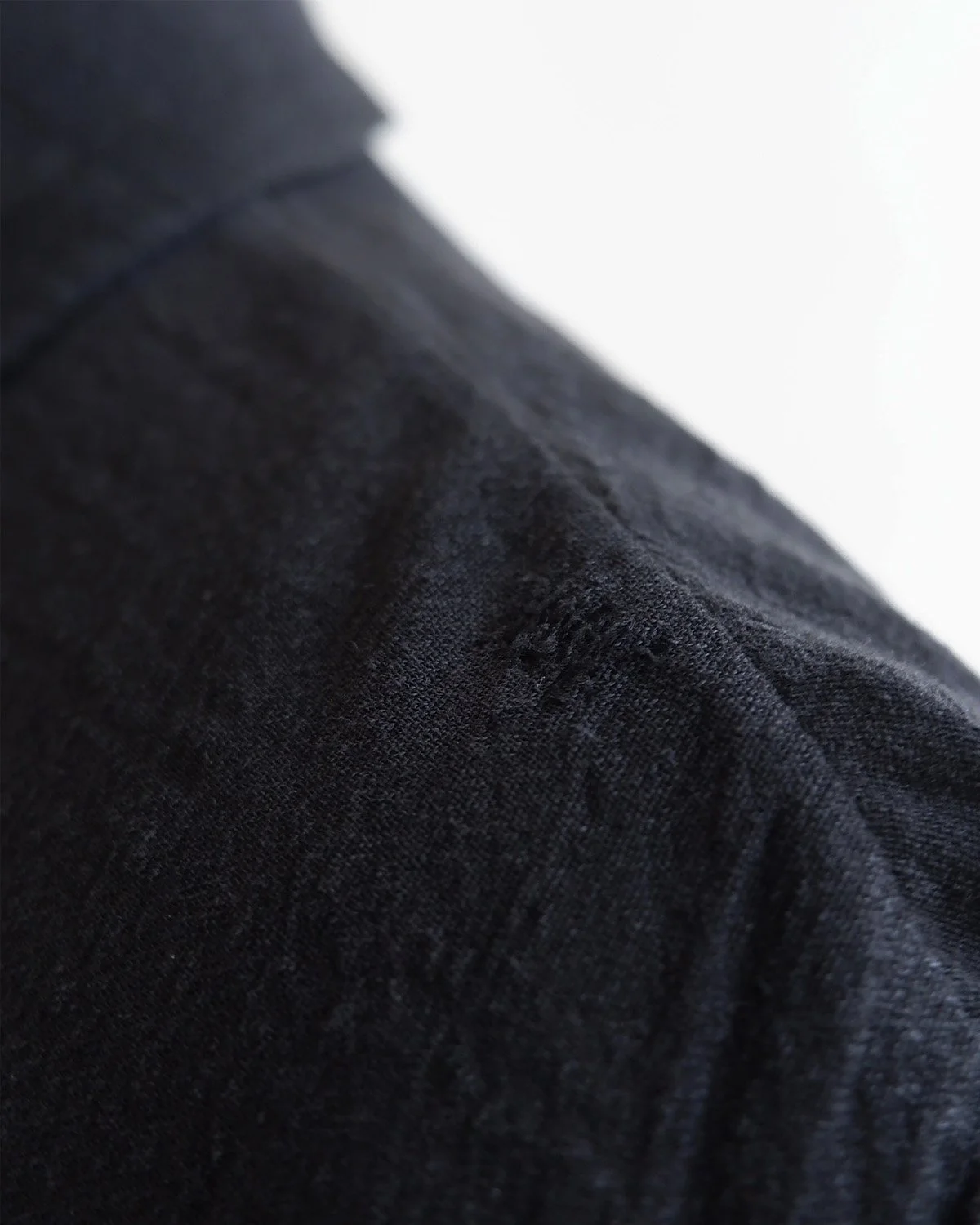 70% Ramie / 30% cotton. Light wear. Small, hand-mended area on shoulder.