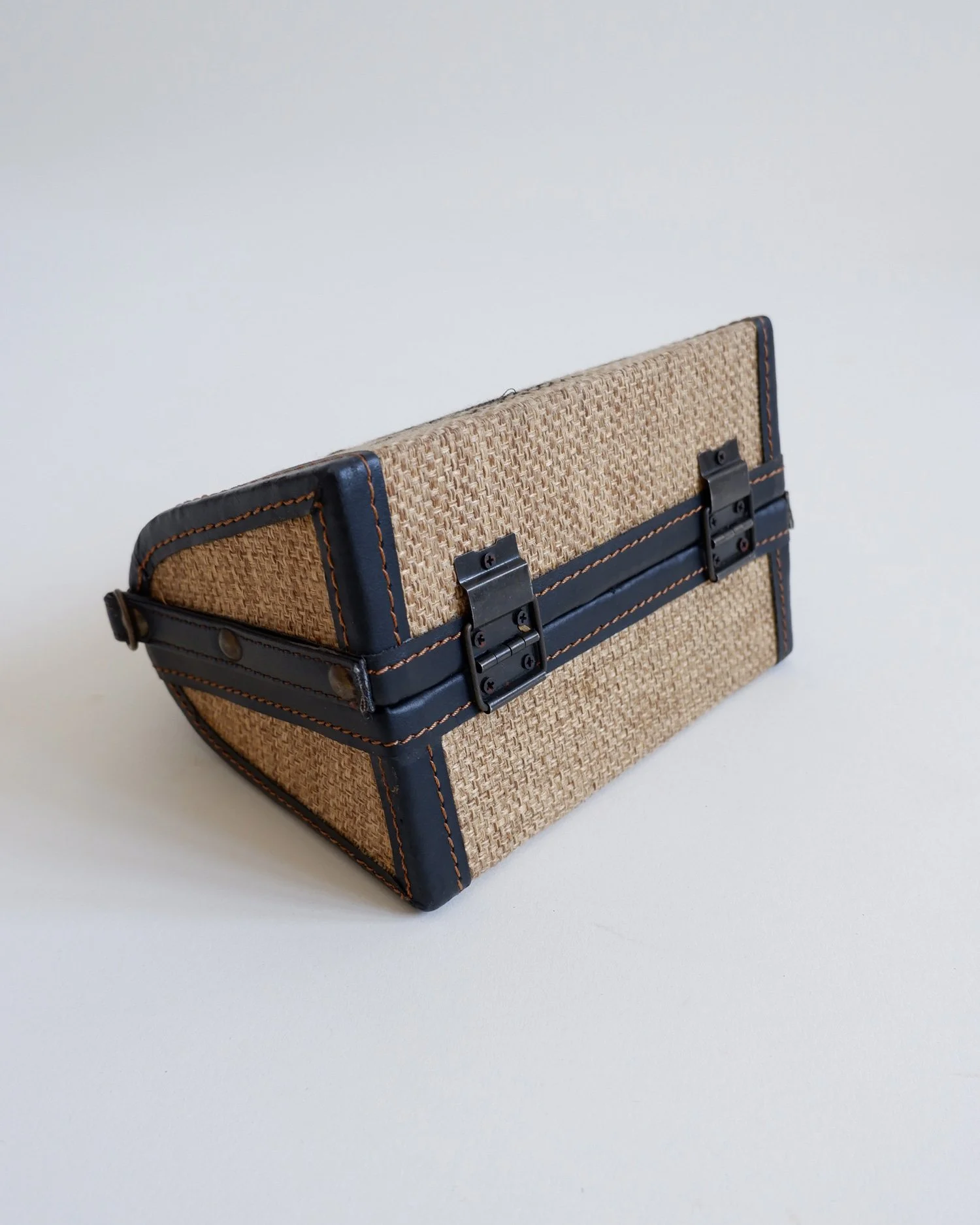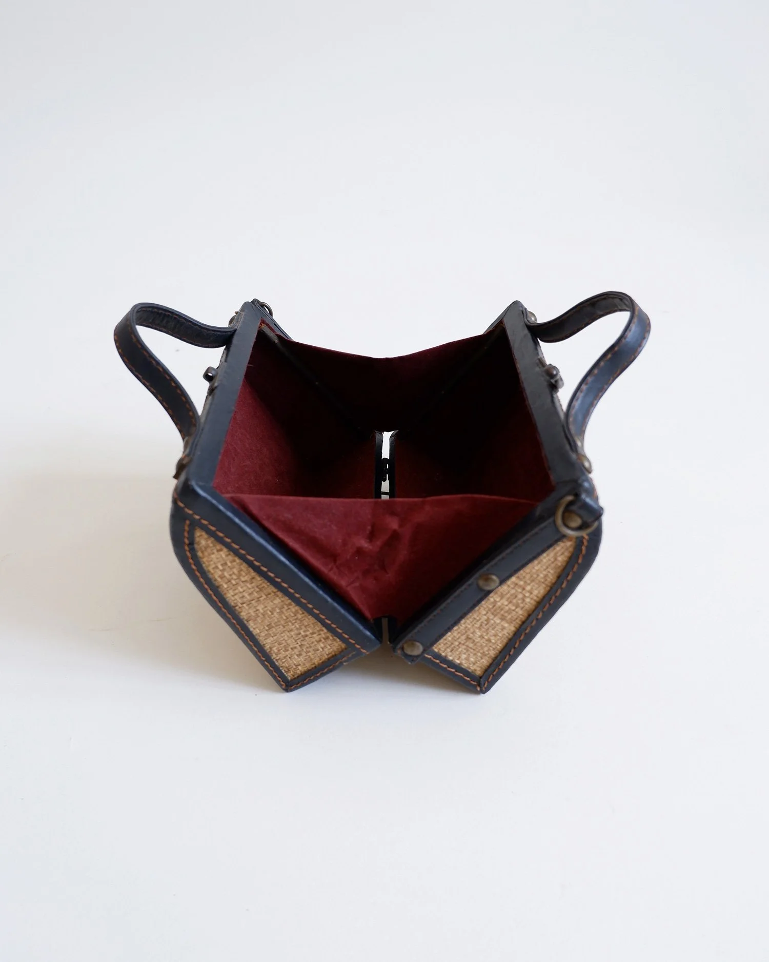 Straw / leather. Overall very good condition with just some light wear noted to metal hardware.